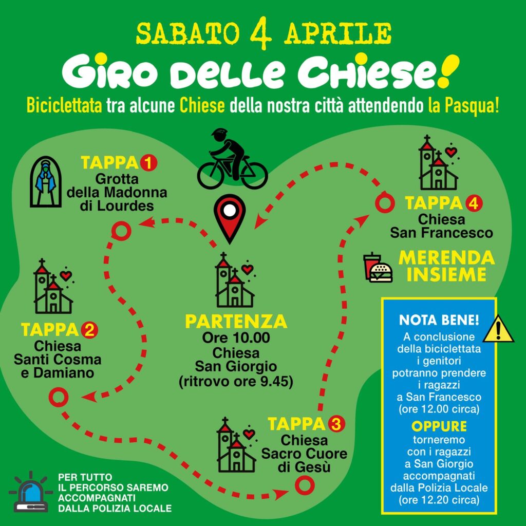 AvvisiIn evidenza BICICLETTATA – GIRO DELLE CHIESE By redazione momb - 21 Marzo 2026 0 FacebookTwitterPinterestWhatsApp